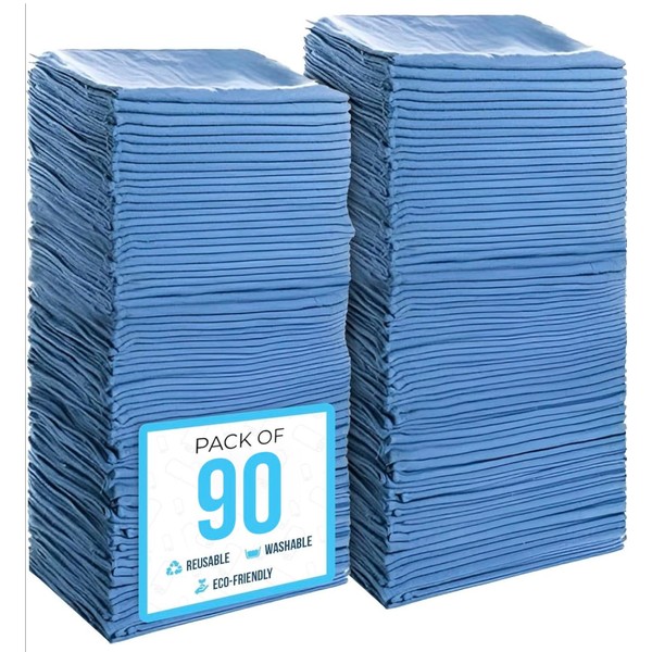 SIMPLI-MAGIC Cotton Shop Towels 14"x12" (90 Pack) – Reusable Cleaning Shop Rags for Automobiles, Industries, Garage and Homes (Blue)