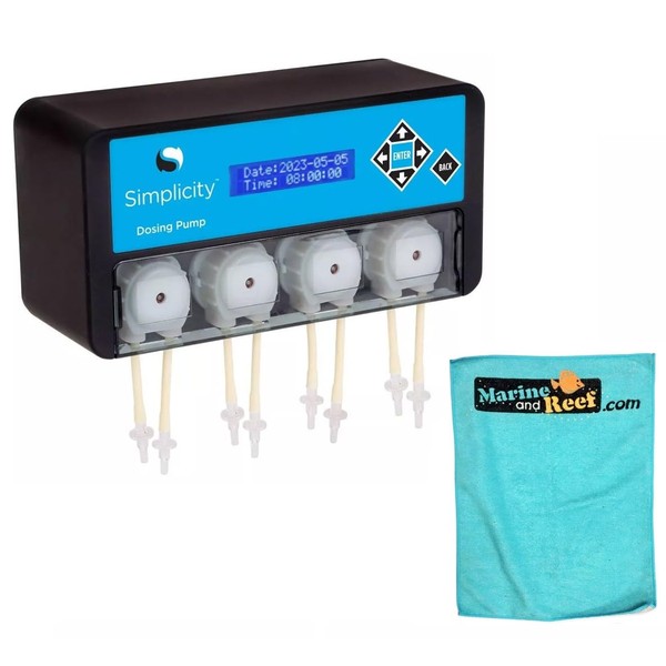 - This Simplicity 4-Channel Dosing Pump Bundle includes TWO items: the Simplicity 4-Channel Dosing Pump and a MarineAndReef.com Aquarium Cleaning Towel.