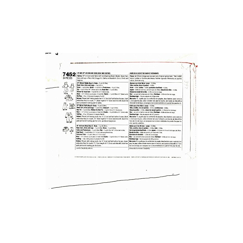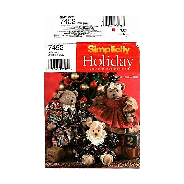 Simplicity 7452 Holiday Sewing Pattern 18 and 22 inch Bear and Clothes