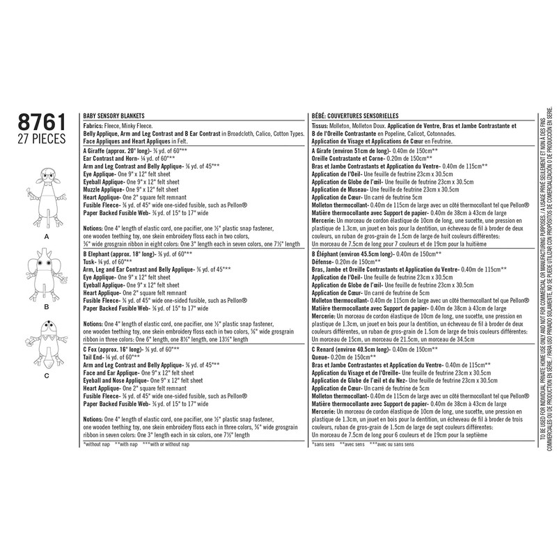 Simplicity 8761 Babies' Sensory Blanket OS (One Size)