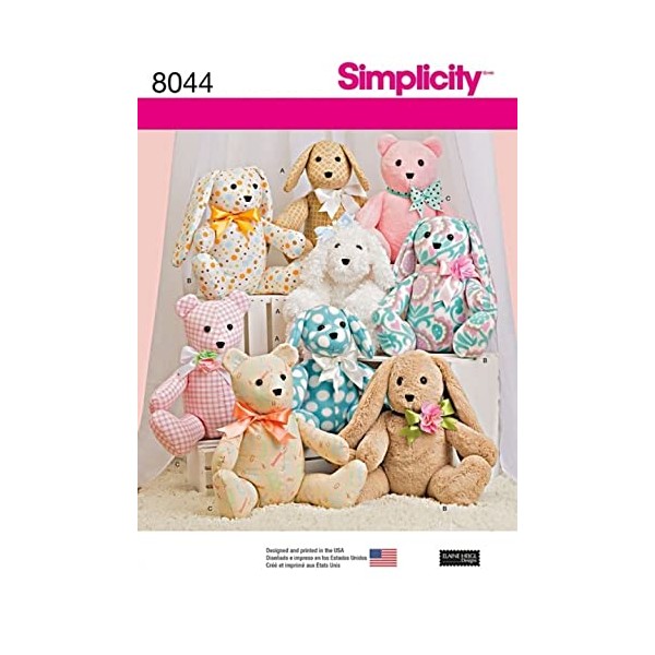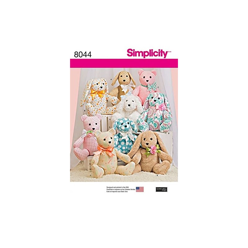 Simplicity Crafts Sewing Pattern 8044 Bear, Dog & Rabbit Stuffed Animal Toys