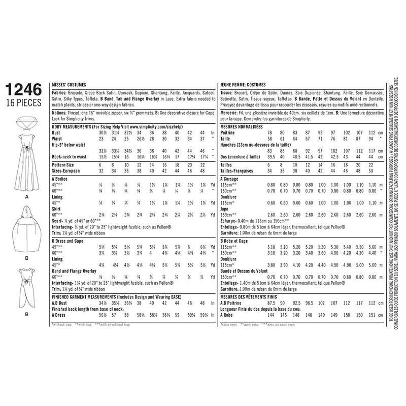 Simplicity Creative Patterns 1246 Misses' Fantasy Costumes, Size: HH 6-8-10-12