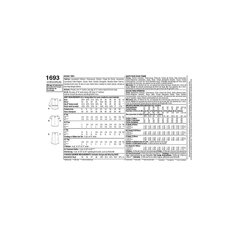 Simplicity Karen Z Pattern 1693 Misses Tops Size 12-14-16-18-20