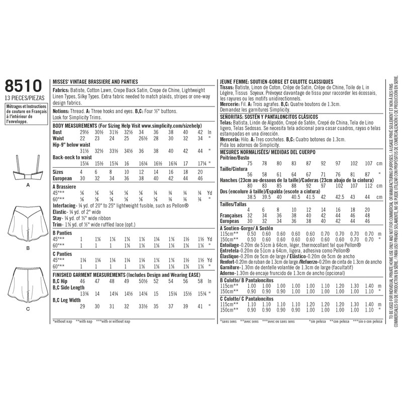 Simplicity Miss Vintage Brassiere and Panties Sewing Pattern, Paper, White, 22 x 15 x 1 cm