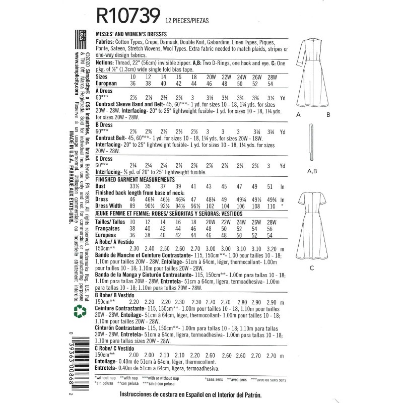 Simplicity R10739 Fit & Flare Dress, Reversible Belt PLUS Sz 20W-28W UNCUT S9176