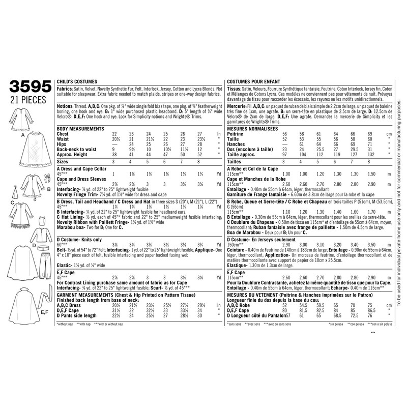 • Child costumes in size a (3-4-5-6-7-8) simplicity pattern 3595