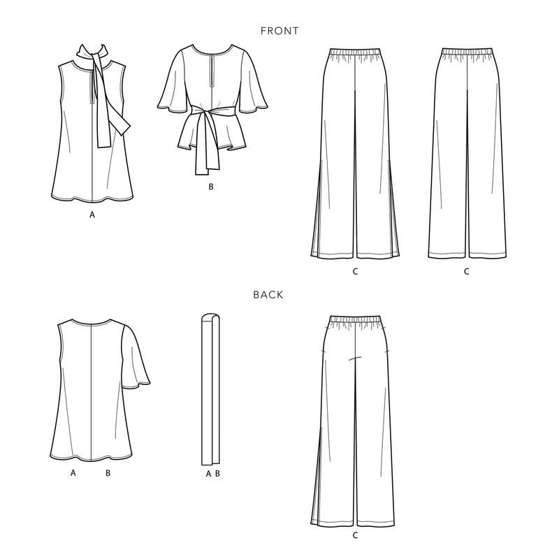 Simplicity Sewing Pattern 9051/R10432 Size H5 (6-14) Misses' Tops with Sleeve and Length Variations; Self Tie Belt or Scarf; Pants with Optional Side Slits