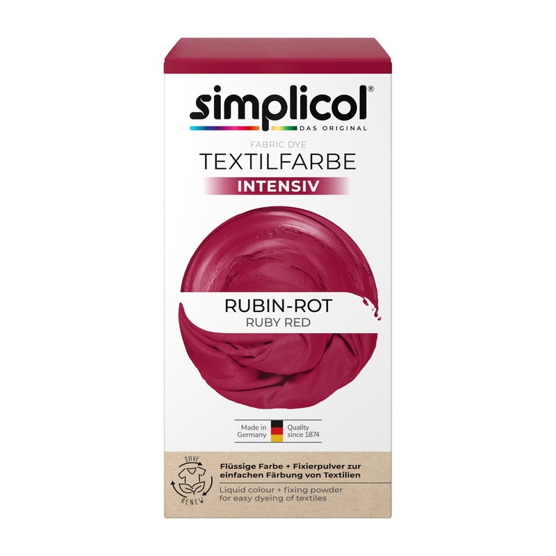 - Intensive ruby red: give your clothes and home textiles an intensely new, bright look with the simplicol textile dye