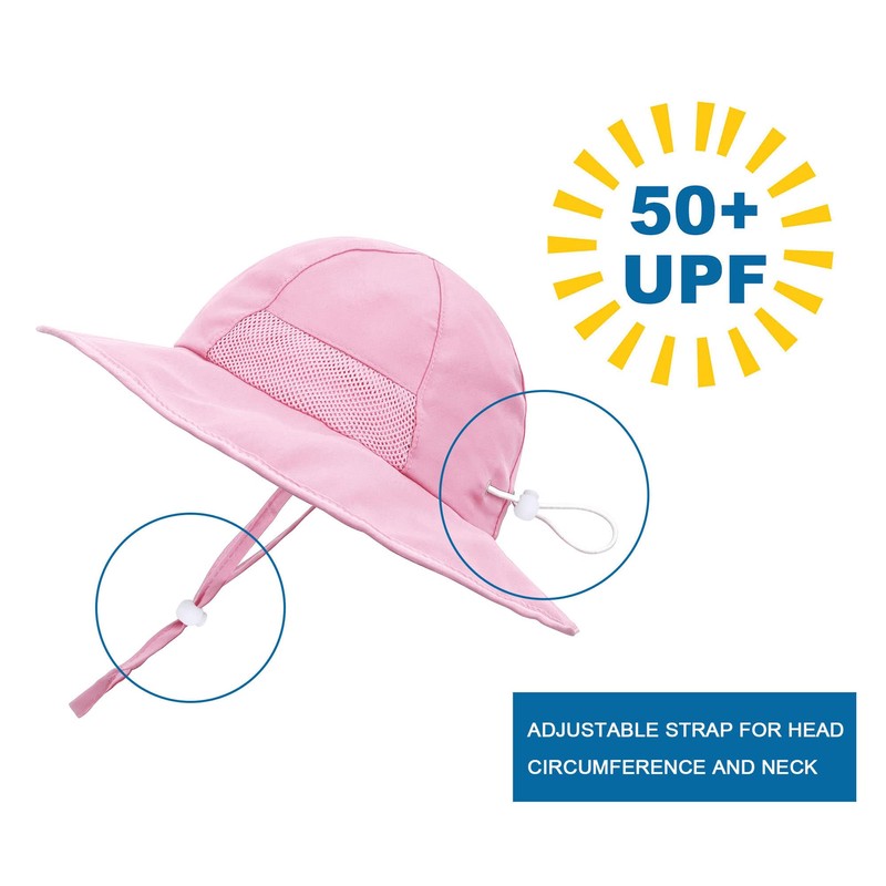 • UPF 50+ Sun Protection - Made with UPF 50+ UV sun protective fabric, this toddler sun hat can block up to 98% of all harmful UV rays. The wide brim kids uv sun hat shades your baby's face, ears, and neck, meaning more time having fun in the sun