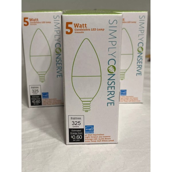 Simply Conserve 5W (40W) LED Candelabra Dimmable B11 Filament Light Bulb