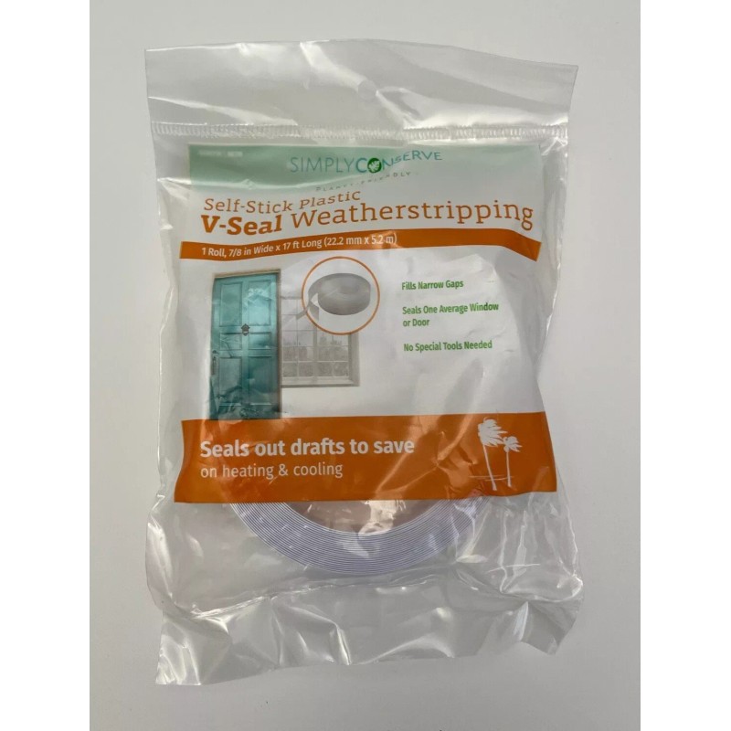 Simply Conserve 7/8" x 17' V-Seal Weatherstripping Self-Stick Plastic M13W White