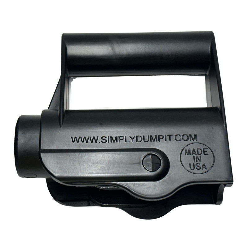 To my knowledge nothing has been done to aide the wheel barrow user to more effectively control the load as the Simply Dump It wheelbarrow handle accessory. Its revolutionary pivot-point design allows a well-controlled operation and helps to prevent the user from losing control of the wheelbarrow, especially when dumping heavy loads. The parallel relationship in the grip adds strength and stability as the user no longer has to release, twist or reposition their hold while dumping. The smooth delivery of partial or full loads allow the user to position the contents in the desired location avoiding spillage, sideways load-shifting and losing control of a heavy load. The elevated grips make transporting a load from one location to another less awkward as the load remains centered in the barrow. Any do-it-yourself homeowner, avid gardener, agriculture worker, farmhand, maintenance worker or commercial contractor will benefit from the Simply Dump It wheelbarrow handle accessory. It is affordable and easy to use. Installation takes only minutes with the easy to follow instructions. Manufactured from nylon. This product has been FEA Tested for Strength and Durability, Dark Gray.