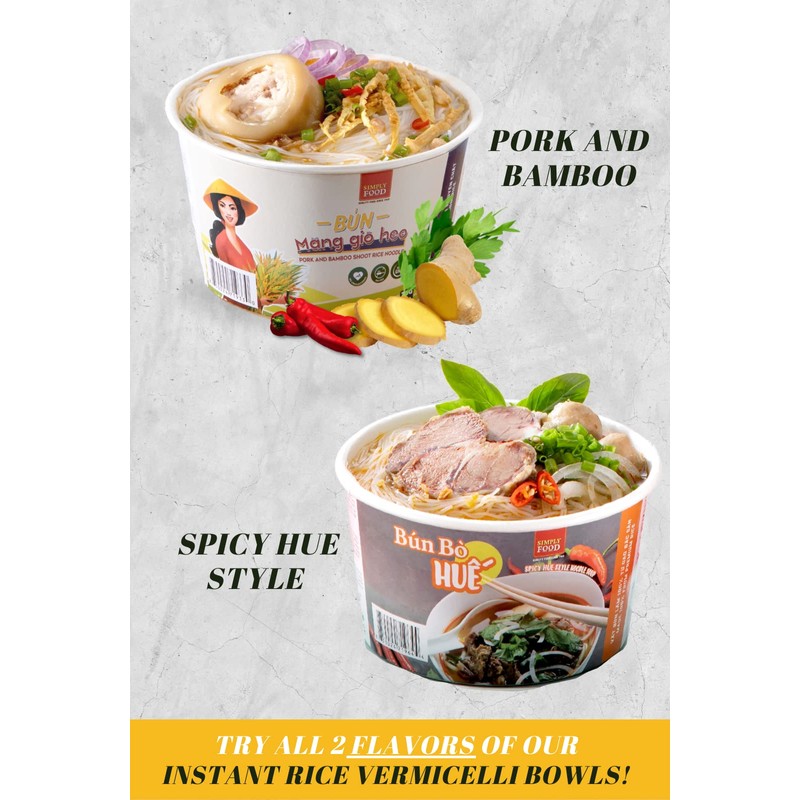 - FAST AND FLAVORFUL - Try the delicious taste of Pork and Bamboo Shoot Rice Vermicelli (Bun Gio Heo) instantly! The pork and bamboo flavored broth pairs perfectly with the subtle taste and texture from the rice noodles.
