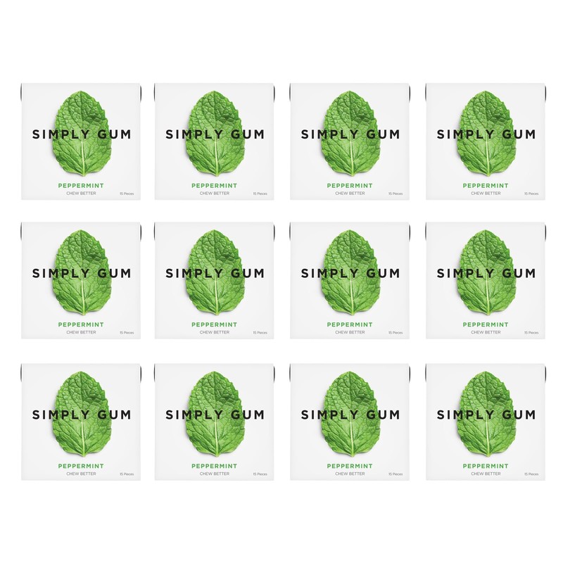 Simply Gum | Peppermint | Plant- Based Chewing Gum | Pack of 12 (180 Pieces Total) | Synthetic Free + Aspartame Free + non GMO
