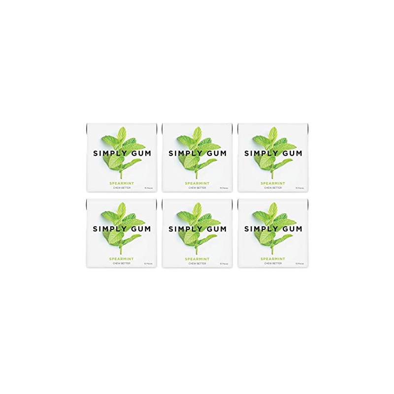 Simply Gum | Spearmint | Pack of Six (90 Pieces Total) | Synthetic Free + Aspartame Free + non GMO