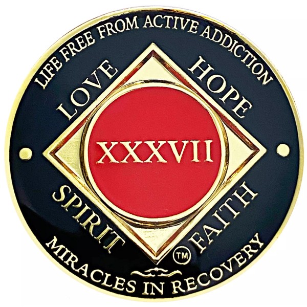 Simply Minimal NA 37 Year Medallion, Narcotics Anonymous Coin, Gold Color Plate