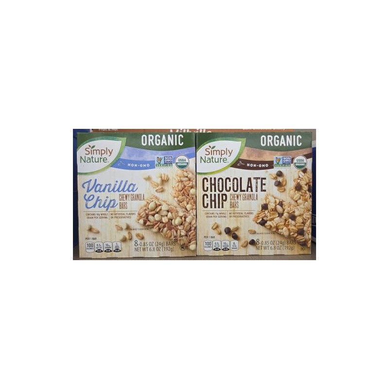 Simply Nature Organic NON-GMO Vanilla Chip & Chocolate Chip Chewy Granola Bars 6.8oz 192g (Two Boxes)