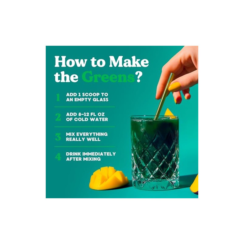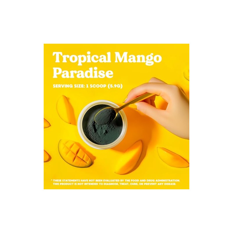 - DELICIOUS MANGO FLAVOR- Our mango-flavored Super Greens delivers a taste of sweet, juicy mangoes that's irresistibly refreshing. It's like sipping a tropical fruit juice, so delightful that you'll look forward to drinking it daily!
