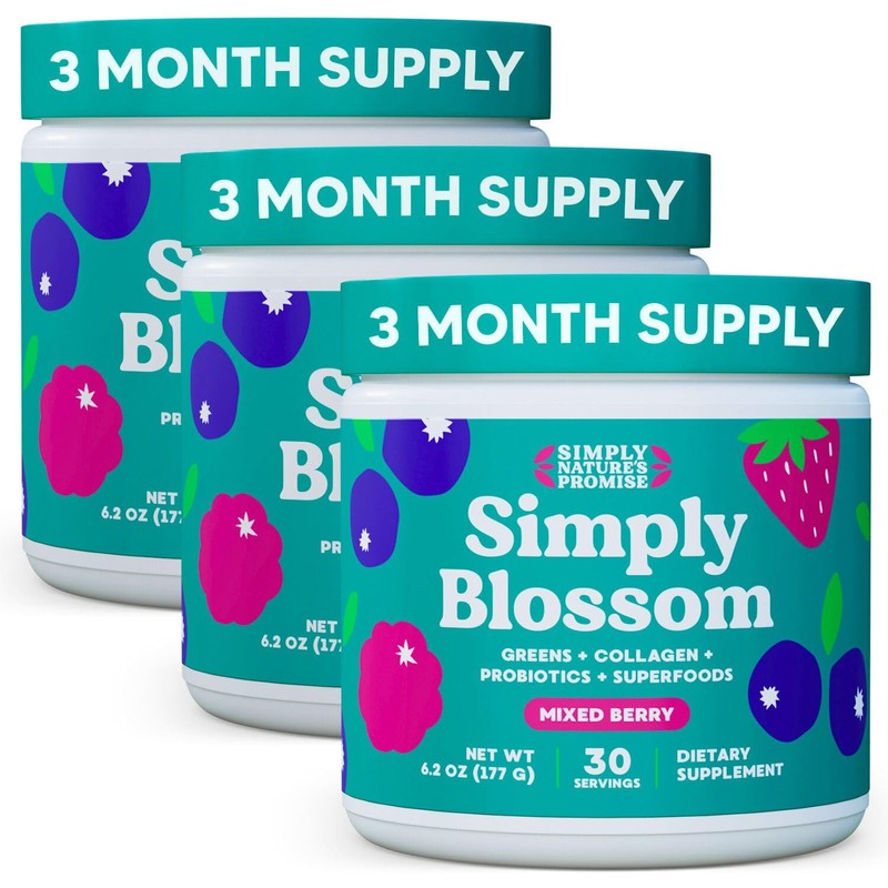 Simply Nature's Promise Simply Nature's Promise Blossom Nutrition - Daily Greens & Superfood Powder + Collagen + Probiotics for Women's Digestive Health & Bloating Relief. Help Your Health Bloom - 3 Month Supply