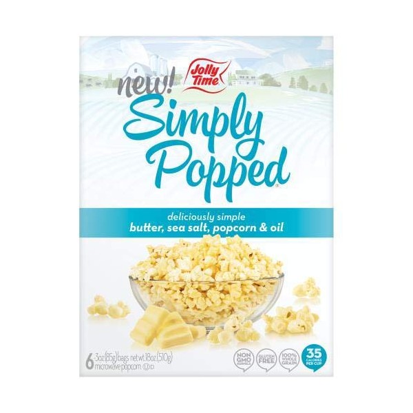 Jolly Time Simply Popped - Lightly Salted Microwave Popcorn, 3oz Sharing Bag, 6 Bags Per Carton (3 Ounce (Pack of 18))