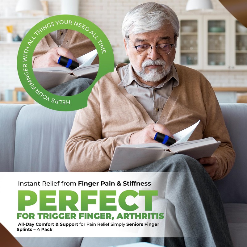 Simply Seniors Trigger Finger Splint - Set of 2 Splints & 2 Sleeves - Pain & Arthritis Relief - Brace for Trigger, Mallet & Broken Finger - Index, Middle, Ring - Adjustable Support for Injury & Sprain