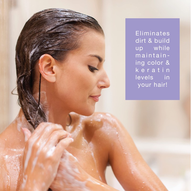 Aplicar una pequeña cantidad sobre el cabello completamente mojado. Masajea suavemente el cabello y el piel cabelludo trabajando con una espuma generosa. Enjuaga bien con agua tibia. Continúe con Simply Smooth Xtend Keratin Replenishing Color Lock Conditioner.