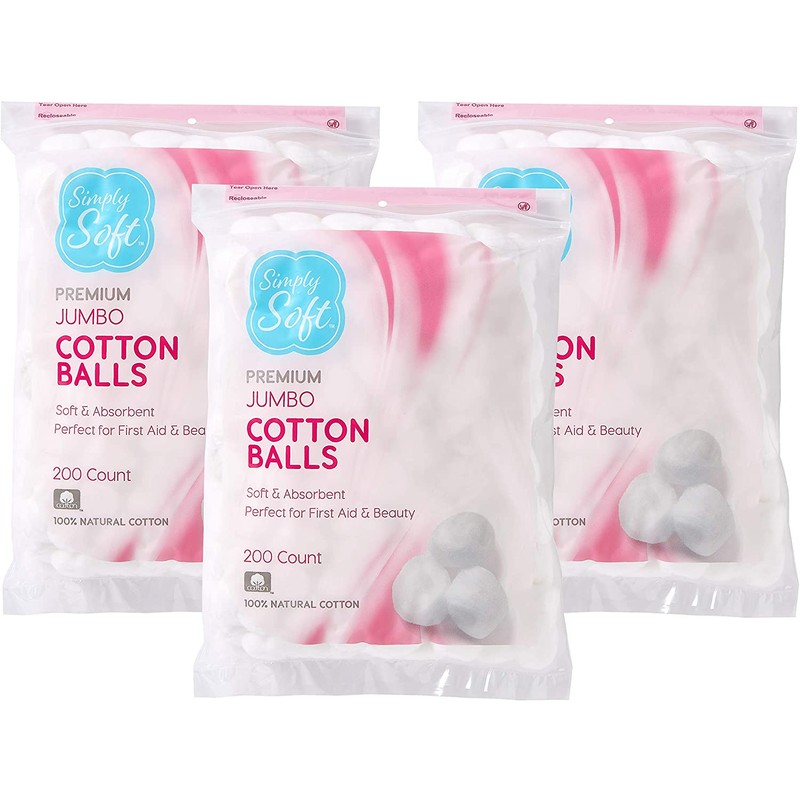 Simply Soft Premium Cotton Balls, 100% Pure Cotton, Absorbent, 600 Count (3 - 200 Count Bags)