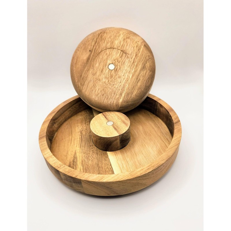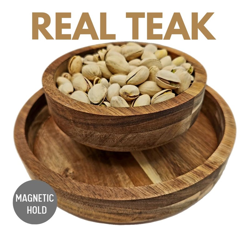 Simply Stated Company Pistachio Bowl with Shell Storage - Teak Wood - Nut Bowl with Shell Holder - Magnetic Hold, Double Bowl with Pedestal - Unique Pistachio Gifts and Snack Bowl
