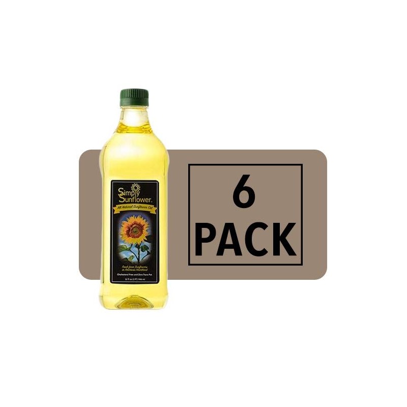 Simply Sunflower All-Natural Sunflower Oil | non-GMO, Gluten-Free, Nut-Free, Vegan, & Heart Healthy Cooking Oil | 6 Pack of 32 oz. Bottles | Made in USA