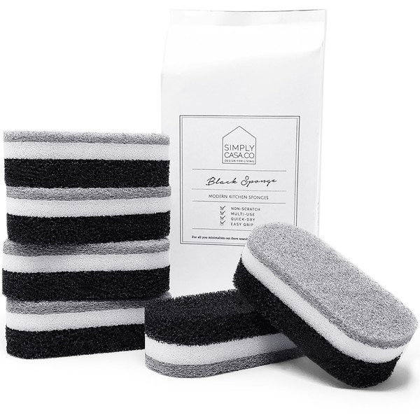 SIMPLYCASA Kitchen Dish Cleaning Sponges - Pack of 6 | Non-Scratch & Fast-Drying | Reusable Scrubbers for Kitchen & Household Use | Stylish Black & White Design