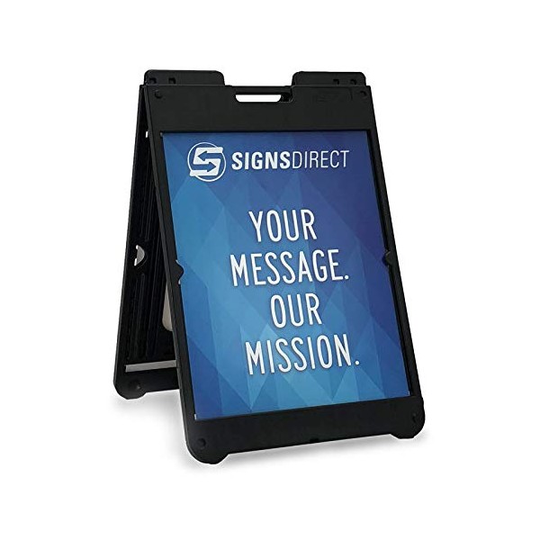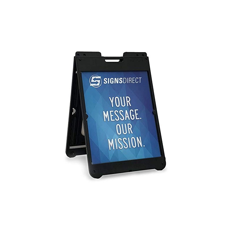 - This stand holds two 28" tall x 22" wide rigid sign panels-one on each side of the stand (sign panels are not included)