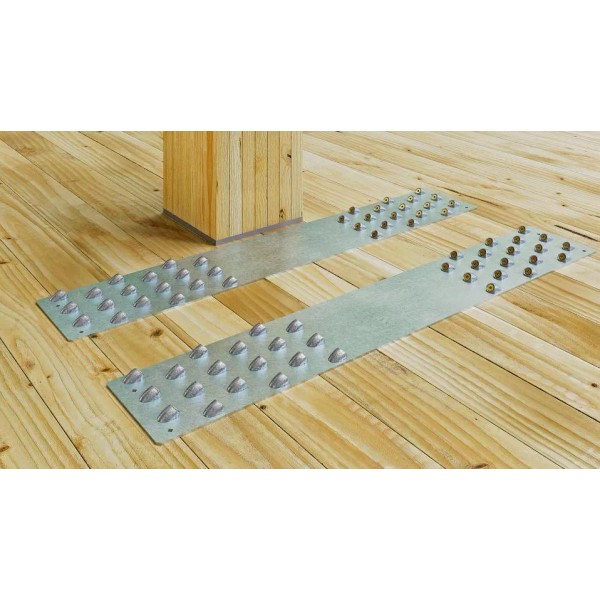 Simpson Strong-Tie tested and load-rated tension straps and fasteners are designed to minimize cost and maximize speed and precision — while providing the strength, versatility and reliability you depend on. The MTWS48 strap utilizes MTW45-8 washers and Strong-Drive SDCF Timber-CF (SDCF) fully-threaded countersunk-head screws. The combination provides a tension strap with high strength and stiffness that can be used in a variety of CLT diaphragm and wall applications. The MTWS48 is a 7-gauge high-capacity strap specifically designed to carry tension across a CLT floor or wall panel joint. The MTWS48 can also be used to attach CLT panels to steel attachment points when paired with a welded connection (designed by others).