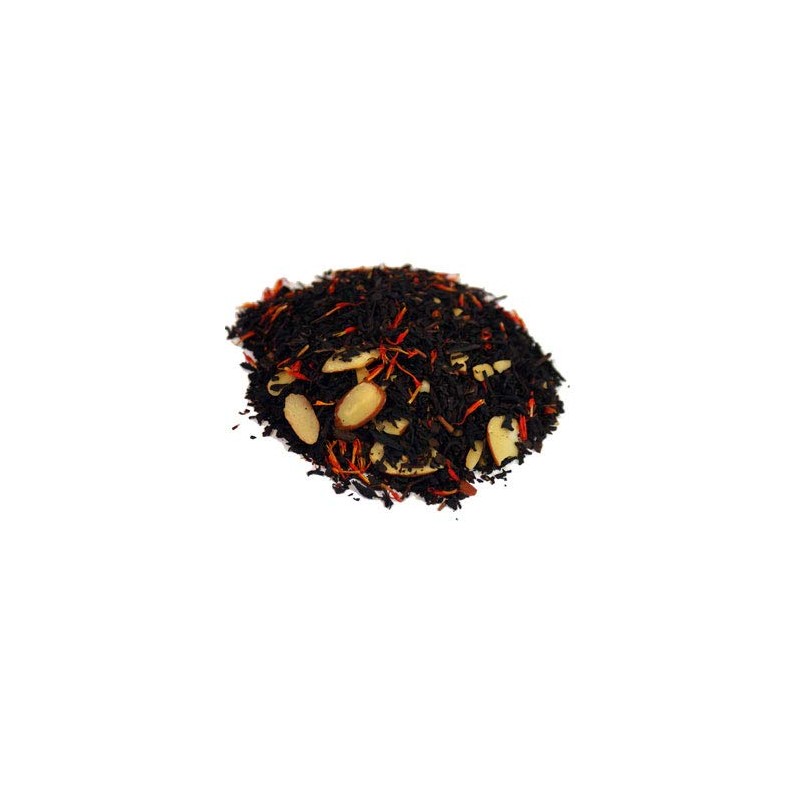 - Ingredients: Black teas, almonds, flavoring and safflower blossoms. Contains Tree Nuts.