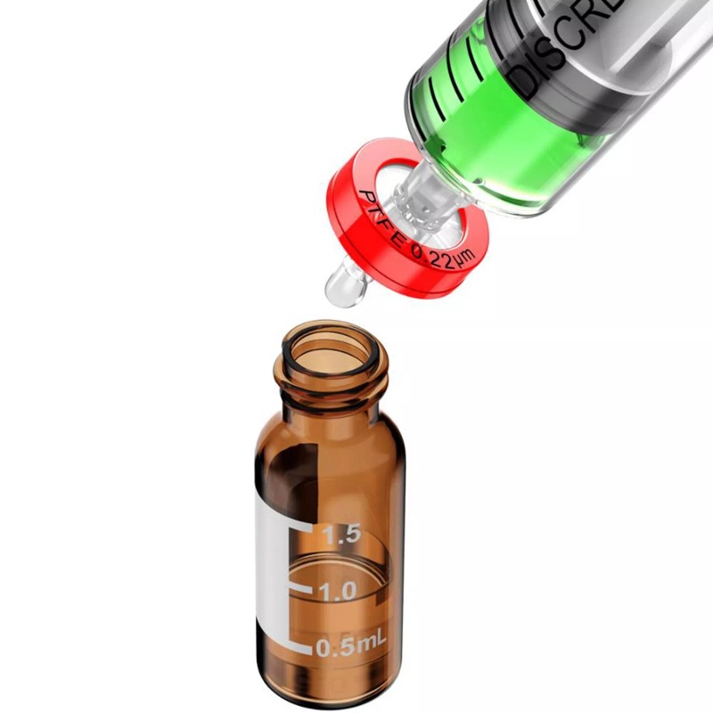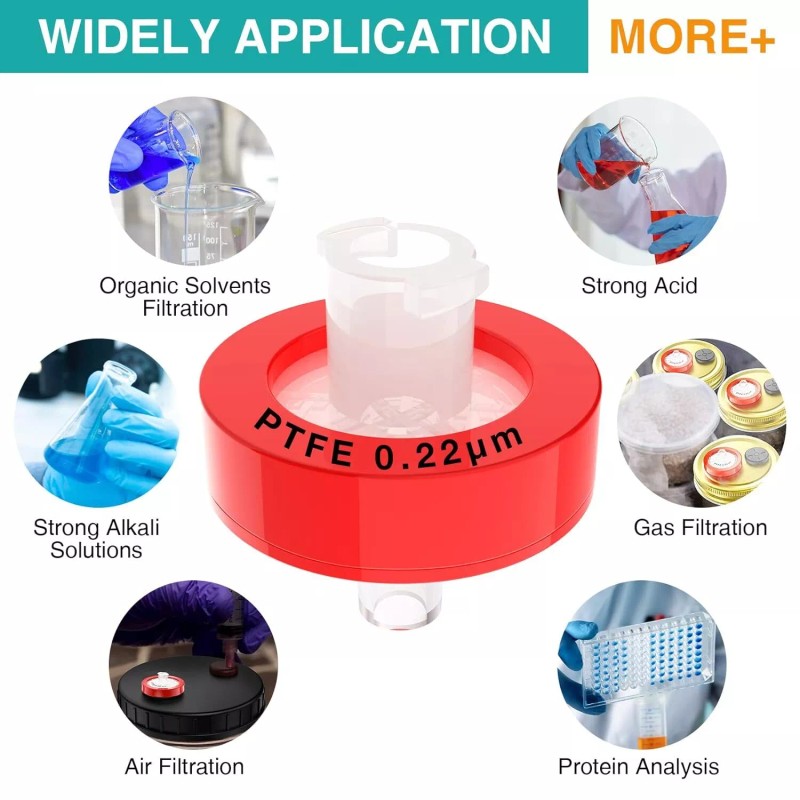 Various Applications: The PTFE needle syringe filters are broadly used for infiltration of various organic solvents, as well as the filtration of strong acid and strong alkali solutions. Also, the Luer lock filter is suitable for gas filtration.