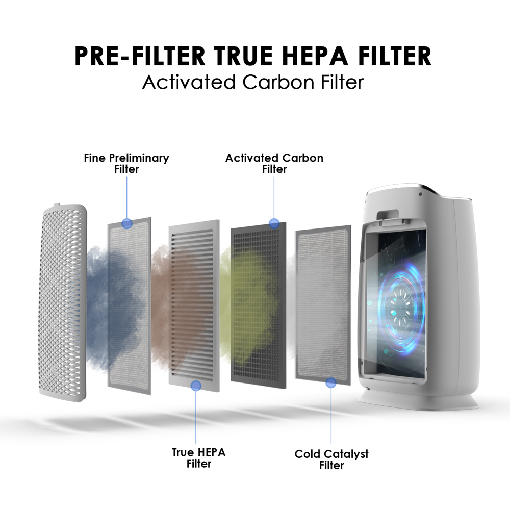 HEPA filter: The ultra-thick pleat design greatly increases the contact area between the filter and the contaminant, which not only improves the purification speed but also makes the dust holding capacity larger and the service life longer.