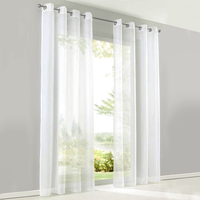 SIMPVALE Curtain Curtains with Eyelets, Polyester Voile Tab-Top Curtain Transparent for Living Room, Balcony, Bedroom, Kitchen, Width 140 cm, Height 270 cm, Curtain White Set of 2
