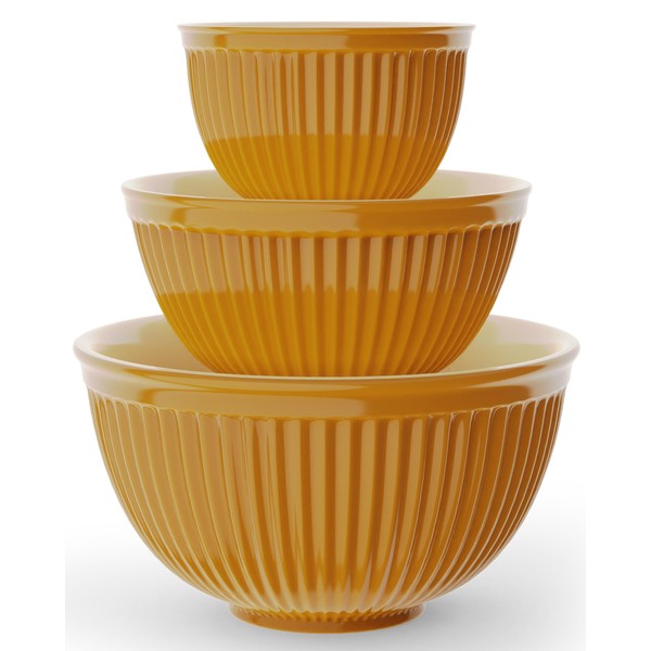 Omniware Simsbury Mixing Bowls, Set of 3 - Nesting Stoneware Bowls for Baking & Cooking - 30 oz, 75 oz, 112 oz - Dishwasher Safe, Durable Kitchen Essentials for Everyday Use (Honey)