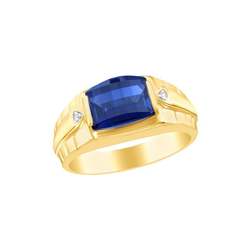 Simulated Blue Sapphire with White Natural Accent Diamond Men's Solitaire Ring in 925 Sterling Silver Ring Size-8