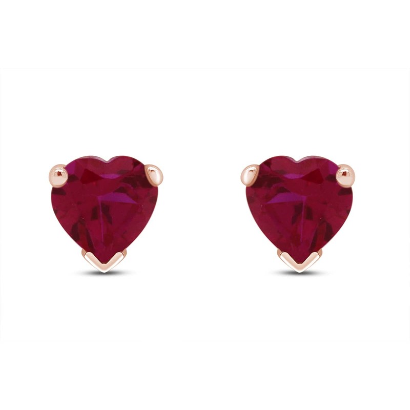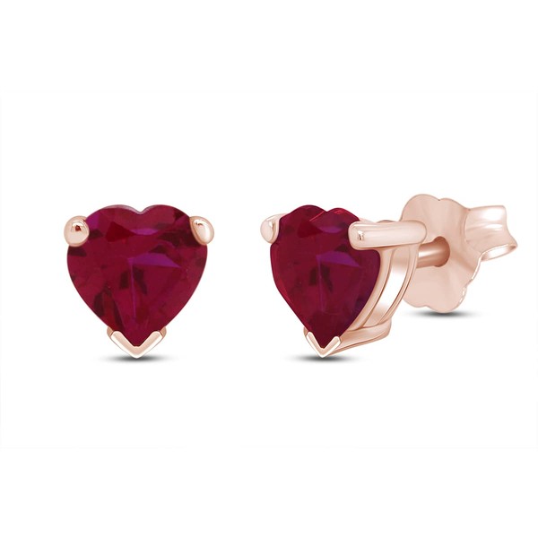 Simulated Crystal Ruby Heart Shape Stud Earrings In 14K Rose Gold Over Sterling Silver (5 Ct)