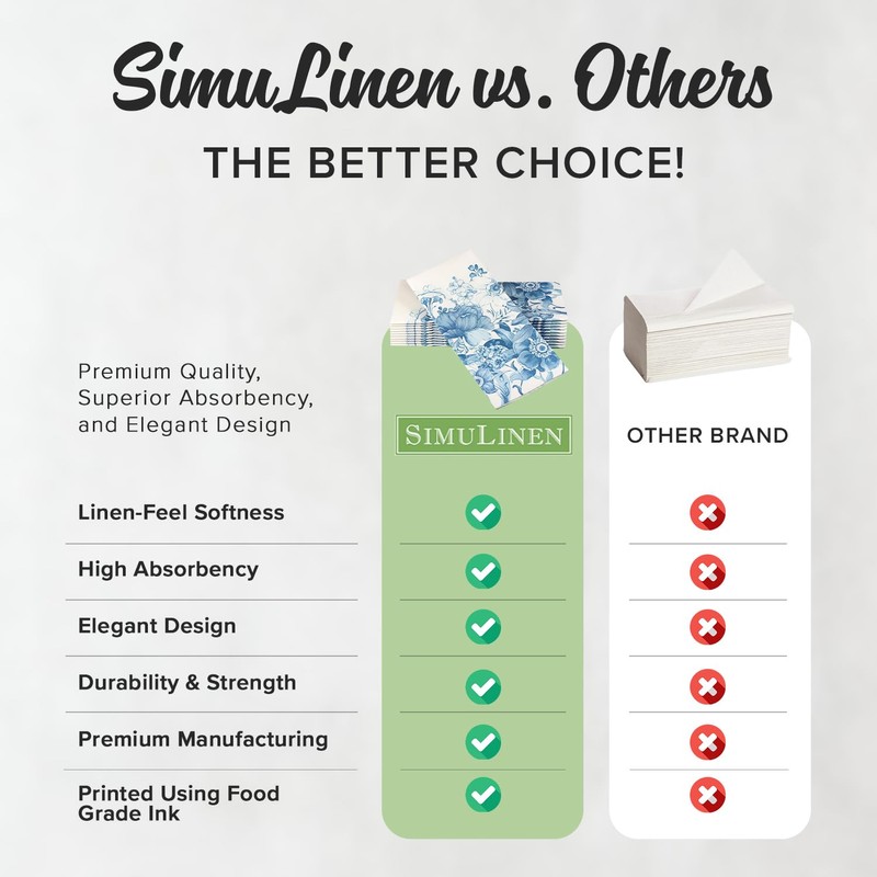 - Absorbent: Highly Absorbent: Designed to handle moisture efficiently, ensuring that one napkin per guest is enough to keep hands dry and clean during meals; perfect for wiping off spills, sauce, or sweat without needing to replace the napkin throughout the event; ensures your guests stay comfortable and your table remains pristine; the absorbency makes them an ideal choice for both casual and formal gatherings, providing a functional yet elegant solution.