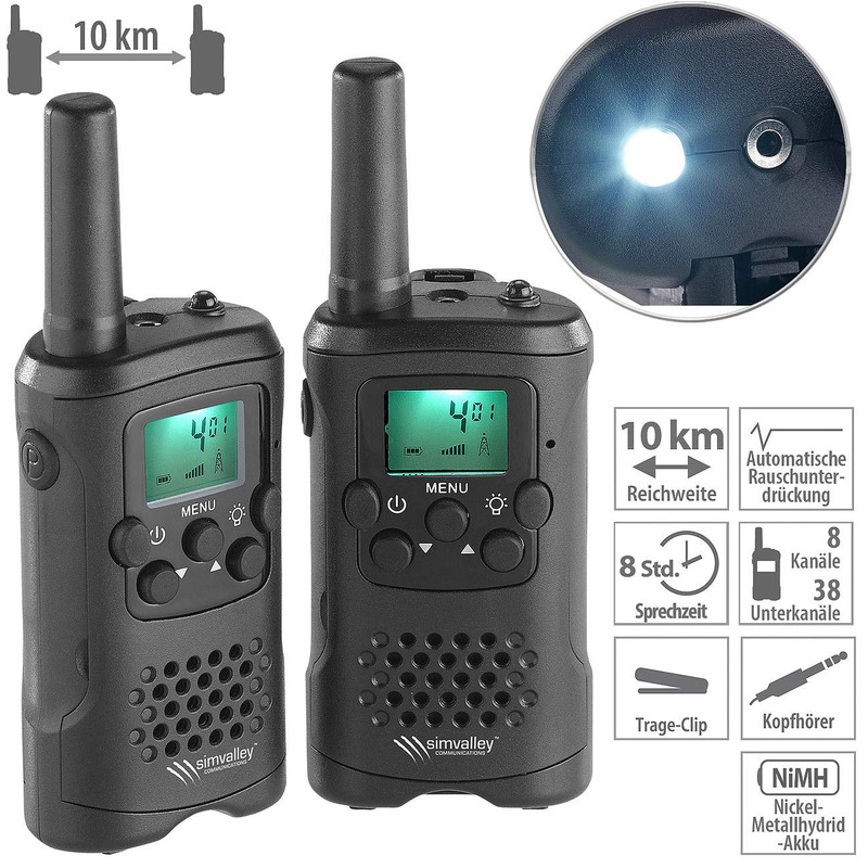 simvalley communications Walkie-Talkie: Set of 2 PMR Radios with VOX 10 km Range LED Torch (Intercom Radio)