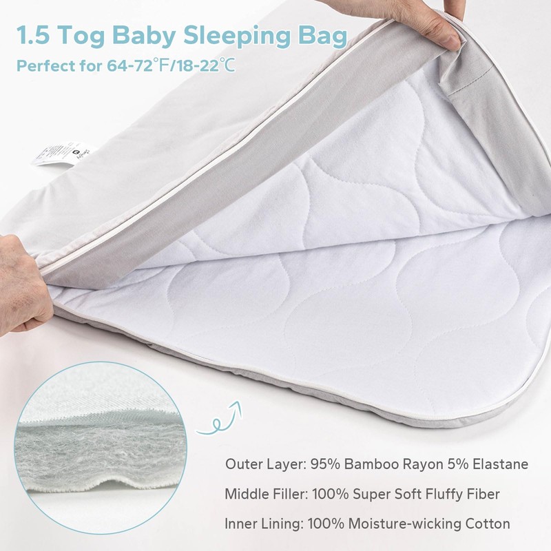 - Soft and Comfortable: Crafted with 95% bamboo rayon and 5% elastane outer, 100% fluffy fiber filling and 100% cotton inner, our sleeping bag for baby is soft and comfortable, perfect for your baby's delicate skin. The breathable and lightweight fabric ensures your baby feels cozy and relaxed.