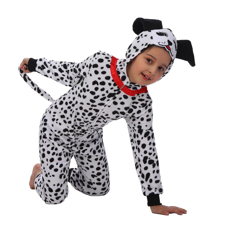 - ♛Dalmatin Onesie Kostüm-dies ist ein Fleece niedlicher Muster gefleckter Hund alles in einem Anzug mit Kapuze, Reißverschluss vorne, einfach für Kinder verkleiden.Maschinenwaschbar kalt, Linie trocken!