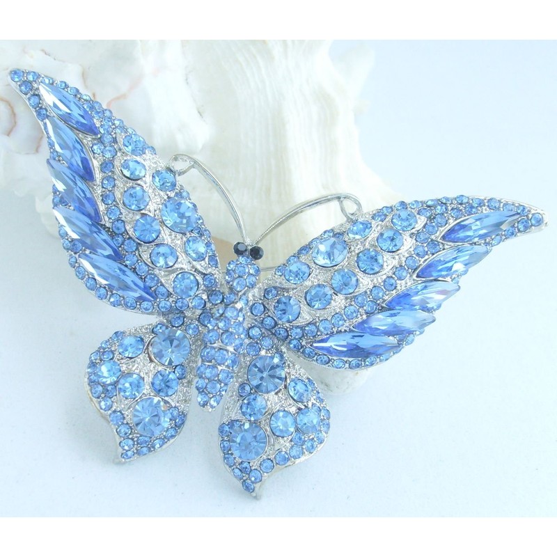 Sindary BZ4538 - Broche de mariposa (9,5 cm, vidrio austriaco) Azul