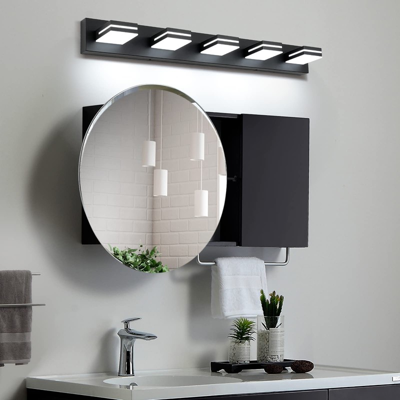 - 【Material】Metal Black Frame with advanced electroplate craft and sealing technology, dust-proof, fog-proof, anti-corrosion and moisture-proof, suitable for humid environment. Frosted White Solid Acrylic Lampshade is rugged, durable and unbreakable, provides excellent down lighting without glare. Gives a great contemporary look to your master bathroom.
