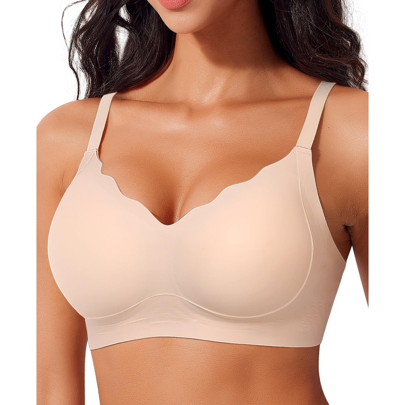 SINFLA Women's Seamless Bra Without Underwire Large Breasts Strong Hold Bra Bustier Padded Soft Comfit Bra Non-Wired Push Up Seamless Bras Bralette, beige, S