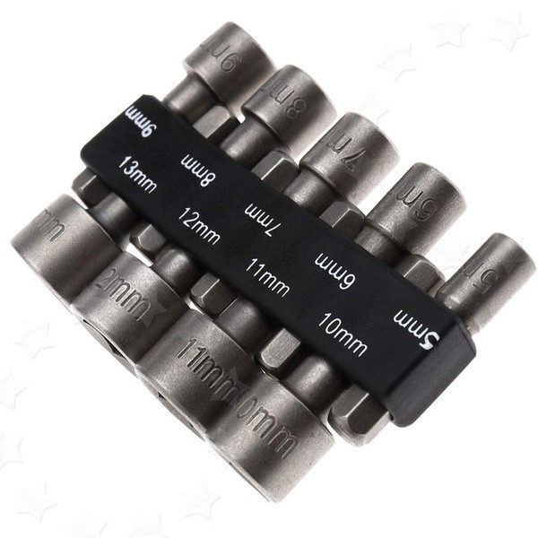 SING F LTD 9Pcs 1/4" Nut Driver Set Socket Adapter Metric Socket Impact Drill Bit 5 to 13mm