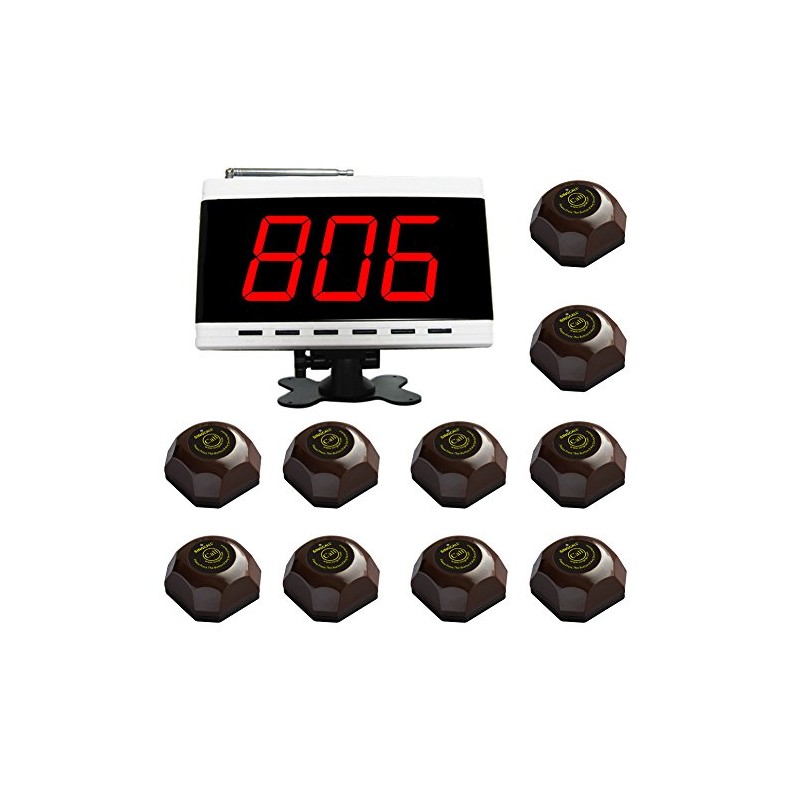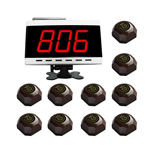 SINGCALL Wireless Calling System, Patient Calling System, Wireless Table Call System, for Hospital Restaurant Pack of 1 Display and 10 Table Bells
