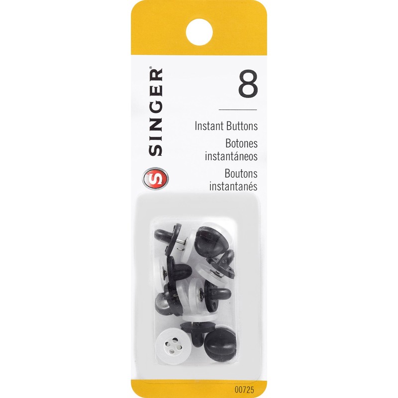 SINGER 00725 No-Sew Instant Button Replacements, 8-Count, White