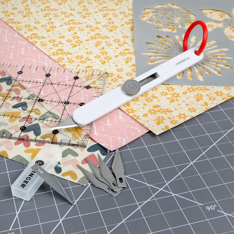 SINGER 3-in-1 Retractable Craft Knife with #11 Blade for Precision Cutting with Blade Storage Compartment